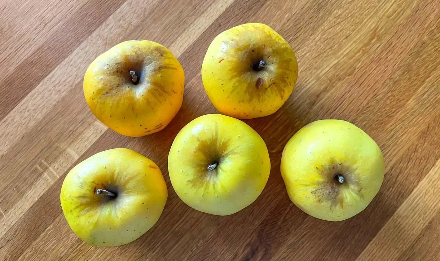 5 medium apples (approximately 2 pounds) I used Opals, peeled, cored, and sliced into 1/8 - 1/4 inch thick wedges