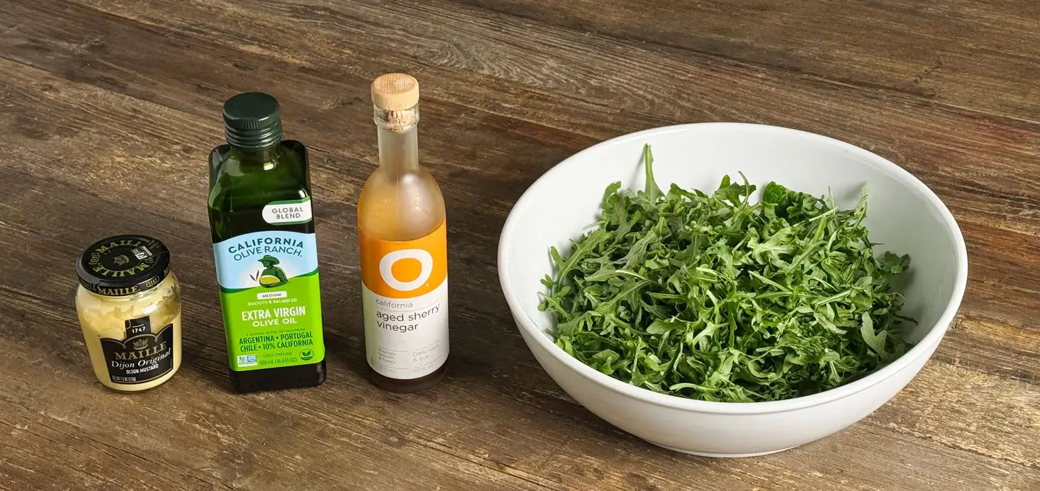 - In the meantime, make the salad dressing. In a small bowl whisk together the mustard, sherry vinegar, 3 tablespoons olive oil, a big pinch of salt, plenty of black pepper, and a pinch of sugar. In a large bowl, lightly toss the arugula with the dressing. Spoon the salad on individual dinner plates and place a stuffed mushroom on each plate. Sprinkle each mushroom with fried shallots and a few fresh thyme leaves. Serve with bread and Enjoy!