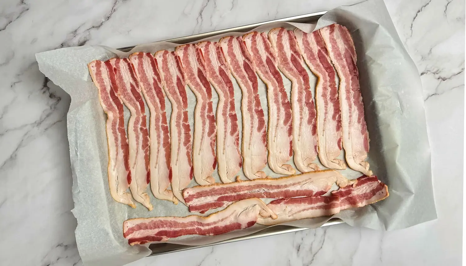 - Preheat oven to 375° with a rack in the center. Line a 13 x 18 half sheet pan with parchment paper and place all the strips of bacon in the pan. In this case, it’s fine if the strips of bacon touch each other. If they won’t all fit, add the remaining slices to the pan after the bacon has cooked for about 20 minutes. It will have shrunk considerably at that point and the other slices will now fit in the pan. Cook the bacon for 30 - 35 minutes until its fully crisped. Remove to drain on paper towels, let cool for a couple of minutes and crumble it into bite sized pieces.