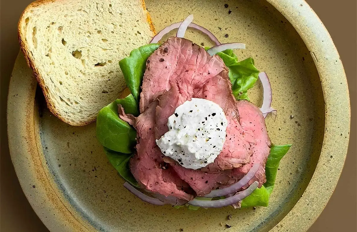 Milk Street has a recipe for the sauce using fresh horseradish. I don’t often encounter the fresh stuff, so I simply mix sour cream with prepared horseradish, a little white vinegar, a drop or two of Worcestershire sauce, and plenty of black pepper. I don’t bother measuring anything for this. I just adjust for seasoning, etc. as I go along. I serve it on good bread and this becomes a sandwich of my dreams.