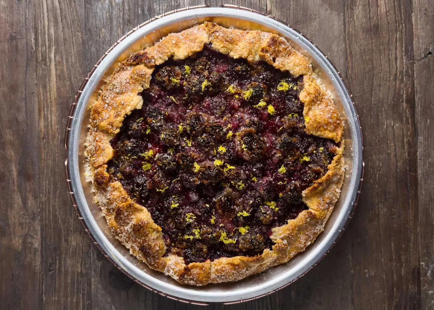 - Remove from the refrigerator and spray the crust with a light coating of water. Sprinkle the crust and top of the filling with finishing sugar of your choice. I opted for White Crystal Sparkling Sugar * this time, but demerara , turbinado, or regular granulated sugar all work well. Place the pie in the oven and bake for 70 minutes or until the crust is fully browned and the berries are bubbling. Let completely cool before slicing. I like to sprinkle freshly grated lemon zest on top right before serving. It adds a nice fresh punch of lemon flavor. Enjoy!