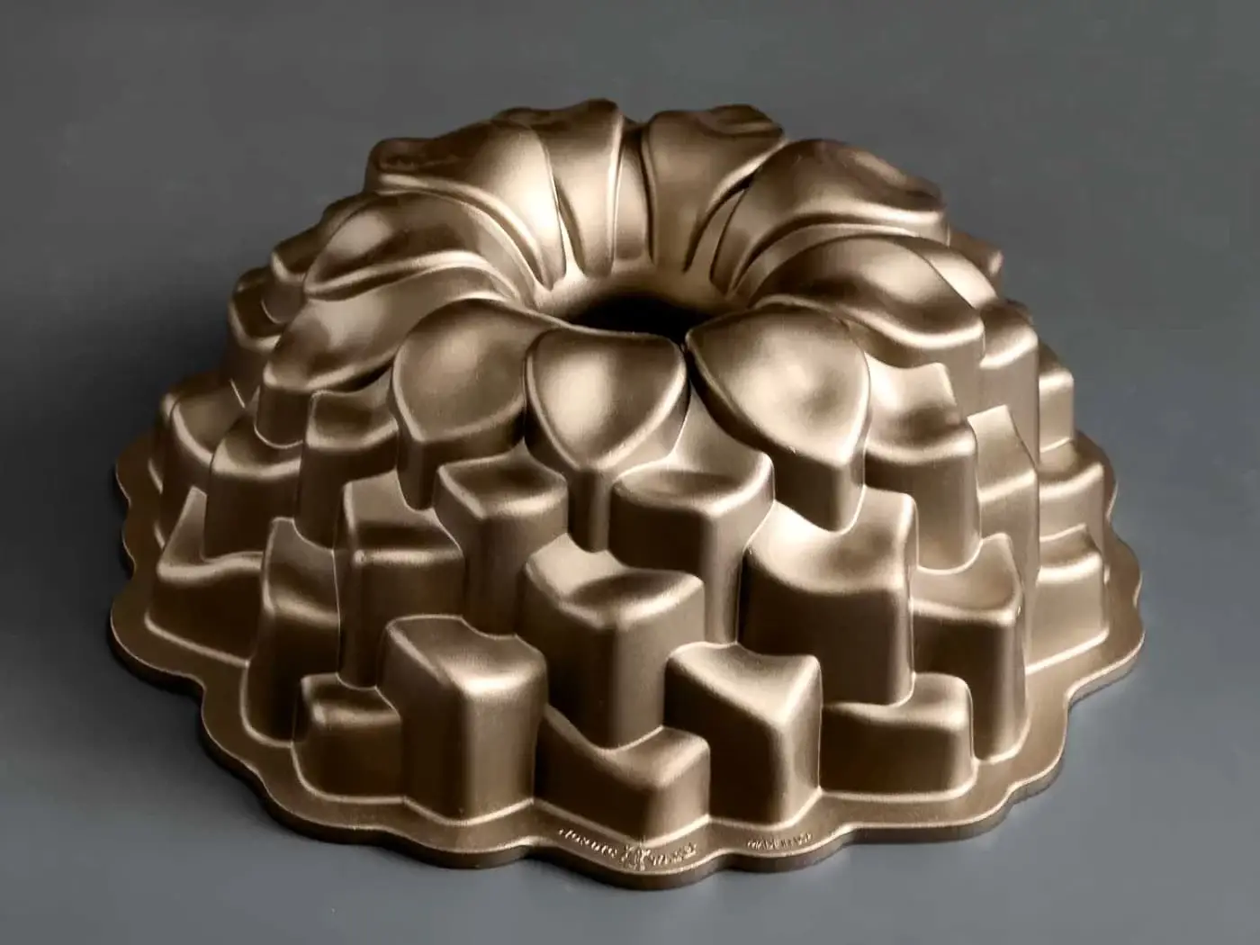 But size is not the only consideration when choosing the right bundt pan for the recipe. The color of the pan also plays a roll in the final outcome of your cake. For instance, I have this pan, the Bavaria 10 Cup, Graphite *