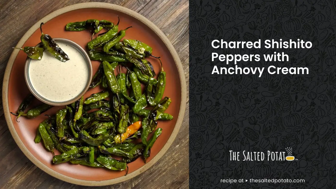servingsChar the shishito peppers under the broiler and serve them with a warm dipping sauce made from heavy cream, anchovies, garlic, chipotle chili flakes, and black pepper. Could hardly be easier, but could not be more delicious.