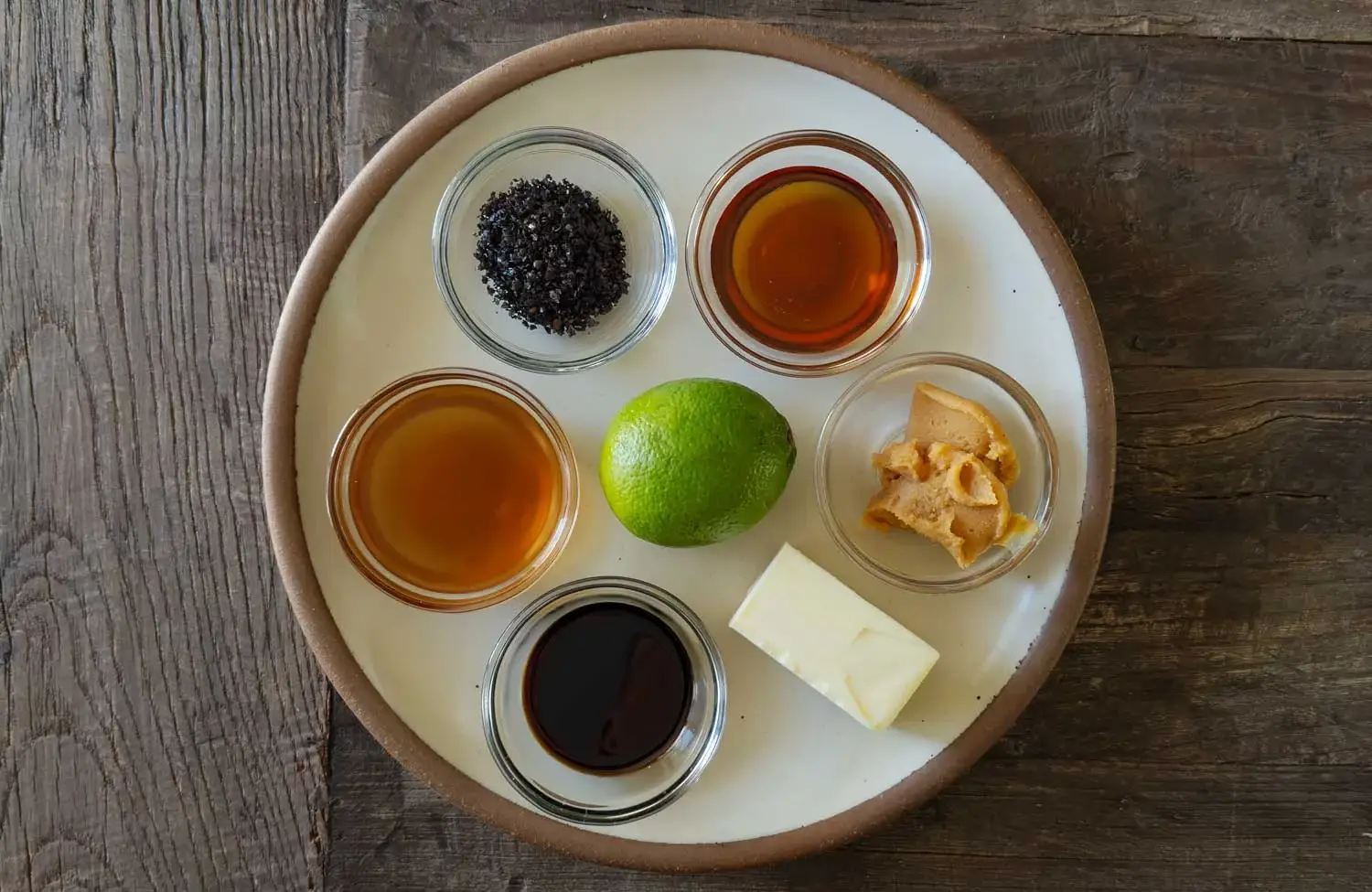 • Add the butter, miso paste, urfa biber *, soy sauce, shaoxing wine *, water, and maple syrup. Stir everything together until the miso has melted and the sauce is simmering. Add the ears of corn back into the skillet. Let cook, while maintaining a steady simmer, and turning the corn occasionally for 10 minutes. The sauce will become thicker. Remove the corn from the skillet, spoon on the sauce, serve with lime wedges, and Enjoy!