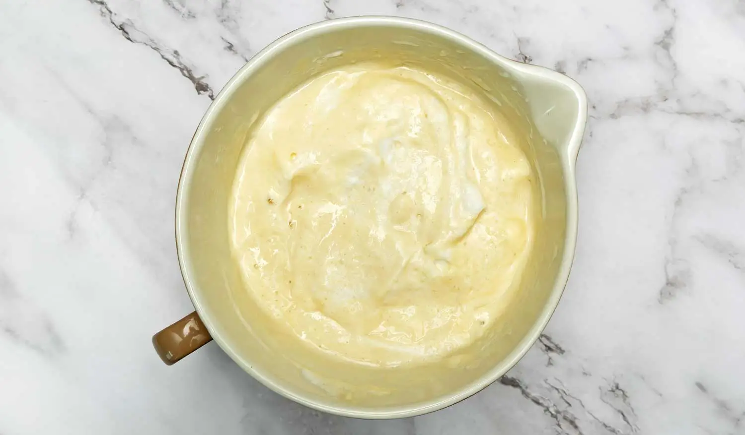 My waffle batter is very light. I separate the eggs and add the yolks to the simple buttermilk batter, along with club soda. Then I beat the egg whites with a tablespoon of sugar and fold them into the batter. This makes for an exceptionally light and fluffy waffle.