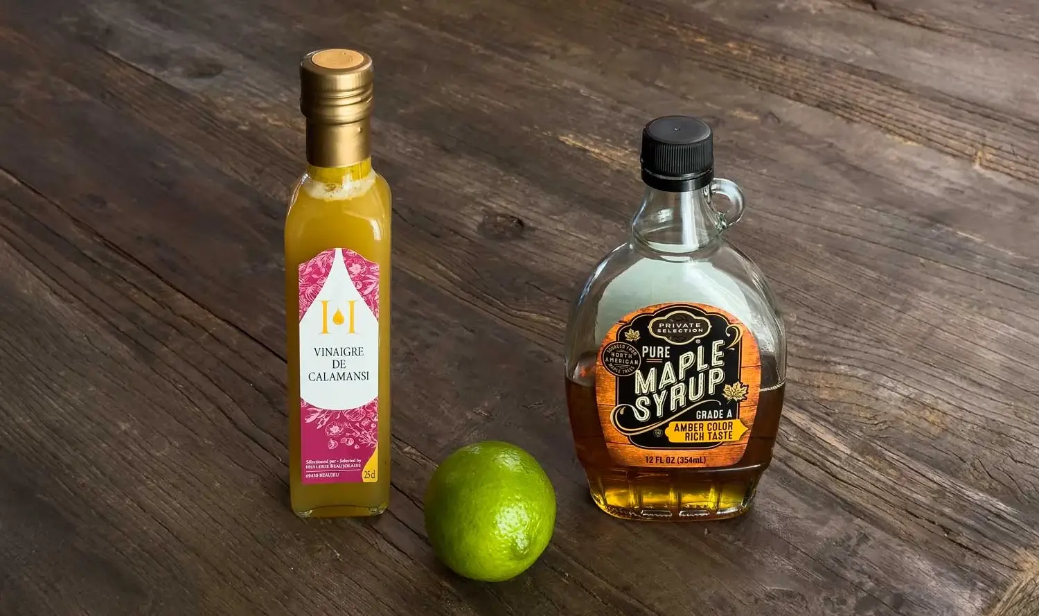 - In a small bowl, whisk together the lime zest, lime juice, calamansi vinegar, maple syrup, salt, and pepper. Pour over the salad and toss gently. Serve with the lime wedges and Enjoy!