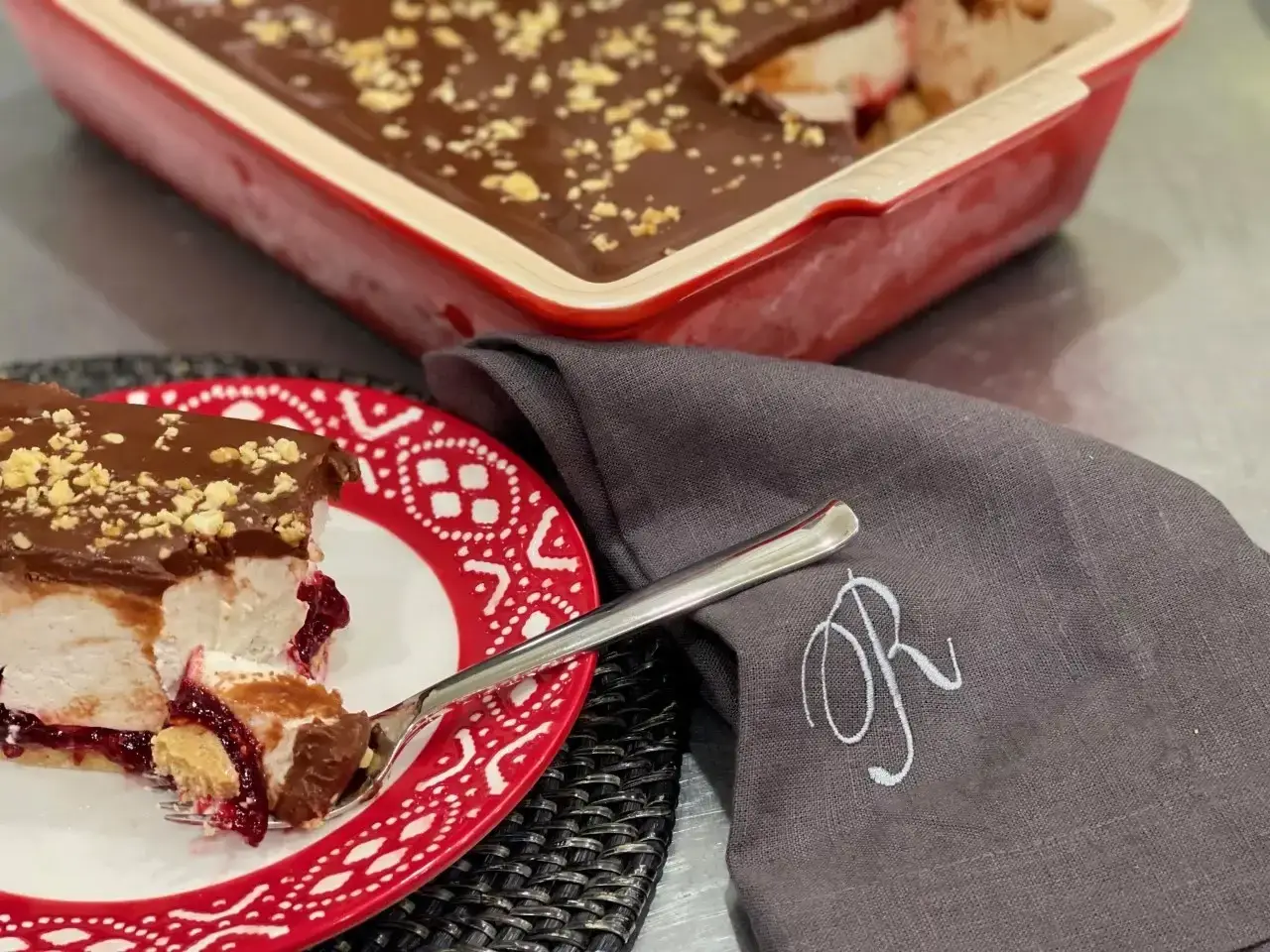 Well, here’s a dessert that’s wonderful for several reasons. First of all, it can be made way ahead of time because it keeps in the freezer for a couple of weeks. Then, no baking is required and it’s easy as can be to put together. But by far, the most important aspect is that it is scrumptious. No exaggeration here. We find this to be irresistible. Not the most sophisticated recipe I’ve ever made, but it’s right up there with the most loved.
