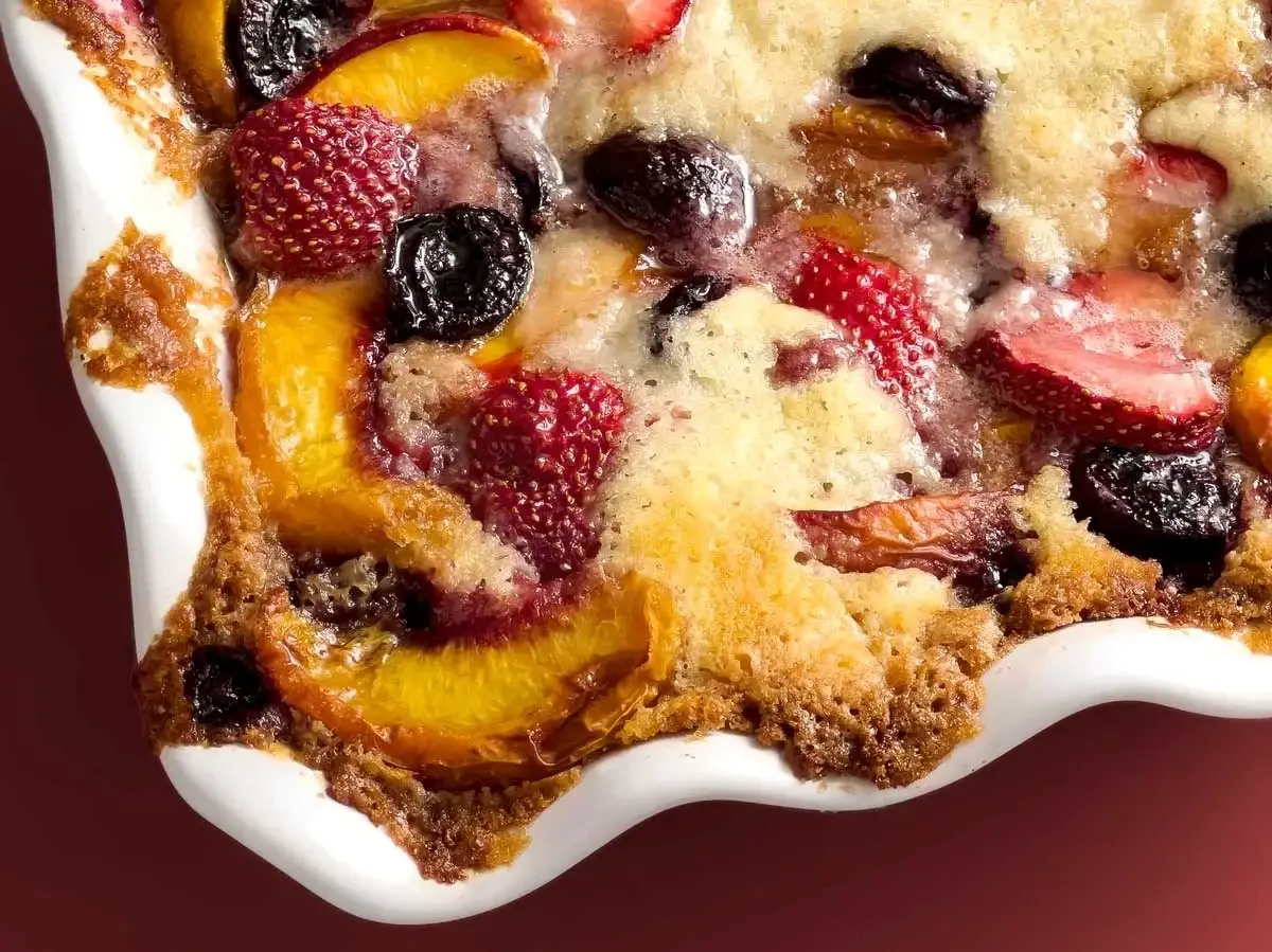Peach, Cherry, and Strawberry Brown Butter Cobbler