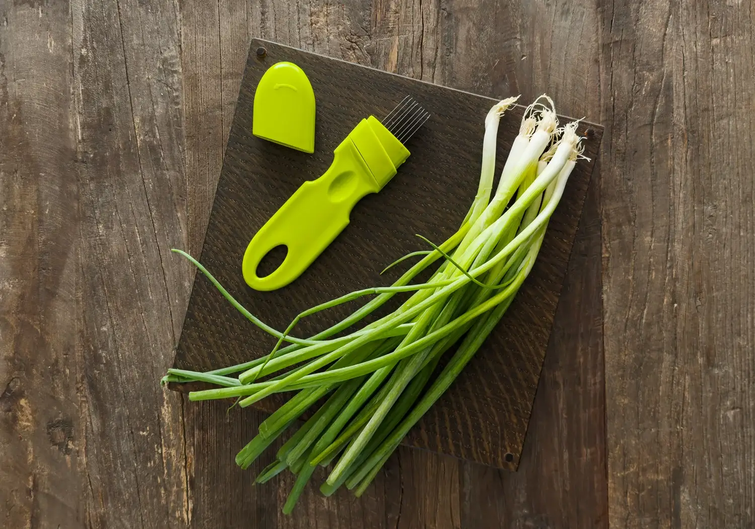 - Slice the scallions very very thinly lengthwise. I have a great little inexpensive gadget that works perfectly for this, as seen above, or you can use a sharp knife. Once you’ve sliced all the scallions, place them in a bowl of ice water in the fridge until you’re ready to serve the dish. This enables the scallions to crisp up and curl.