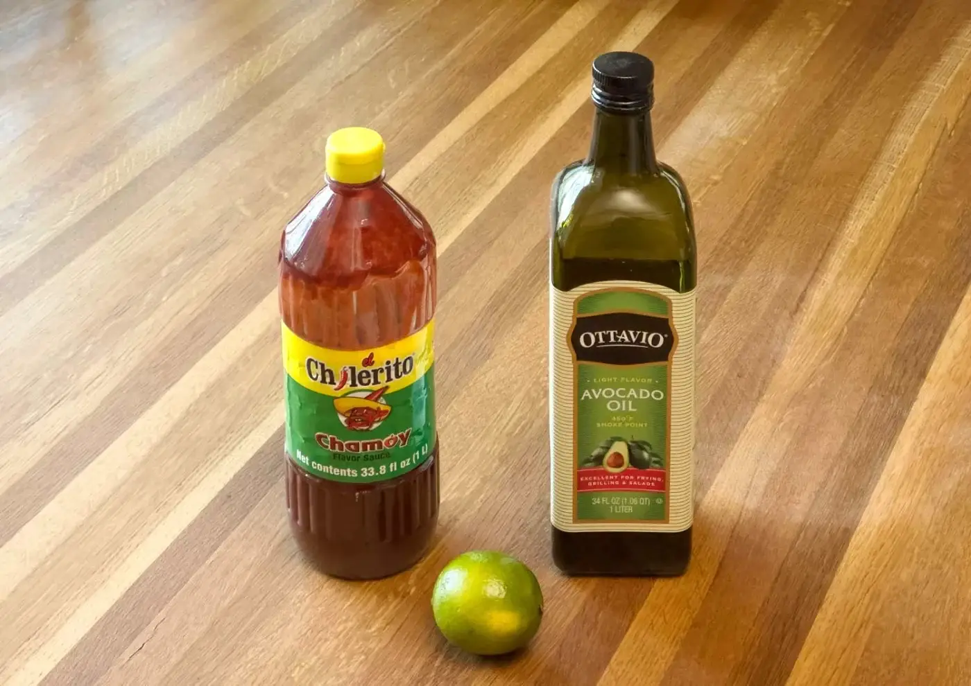 - In a small bowl, whisk together the chamoy, maple syrup, lime juice, avocado oil, and several healthy grinds of black pepper.