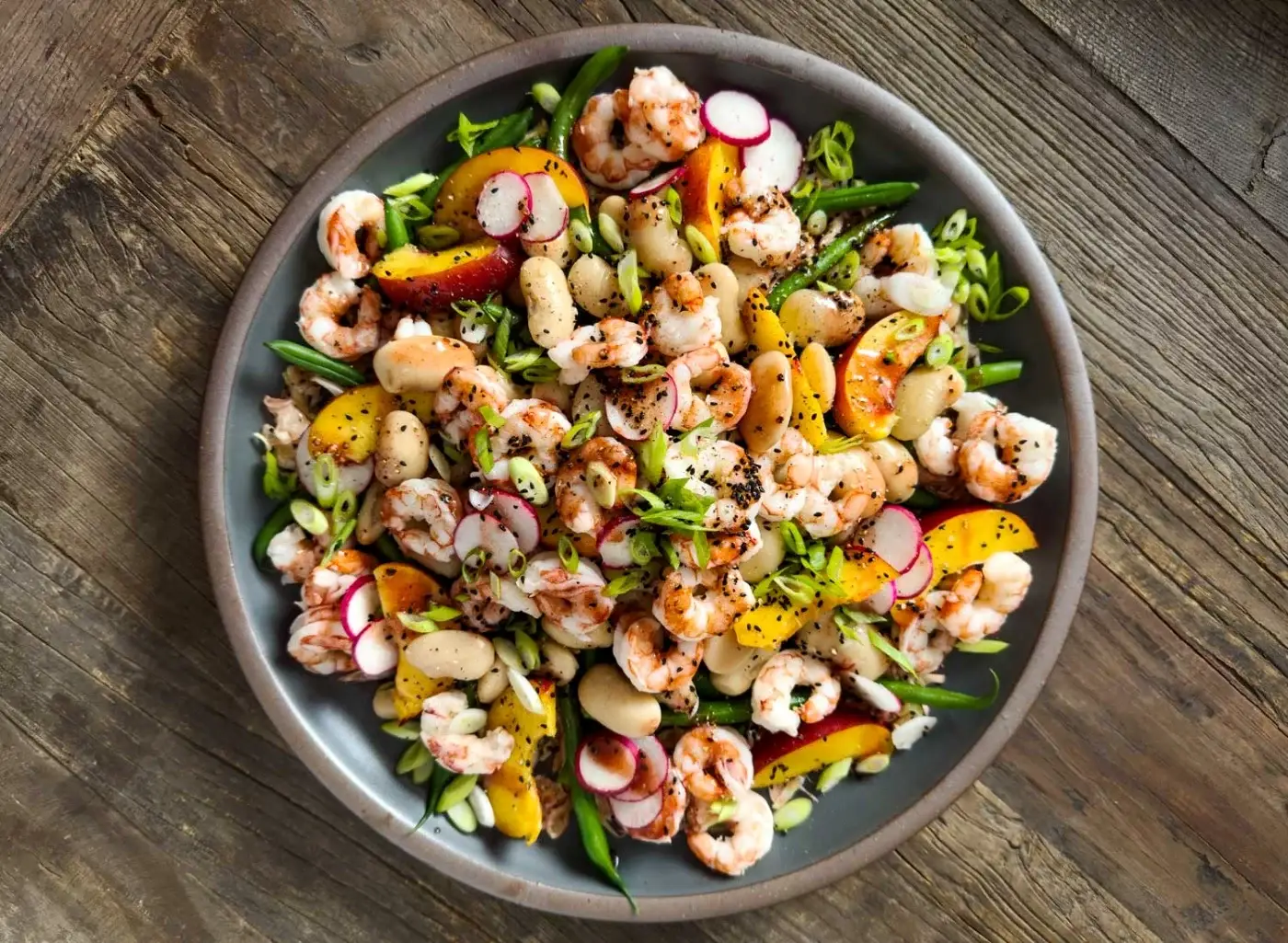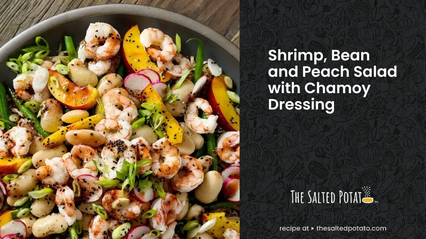 Shrimp, Bean, and Peach Salad with Chamoy Dressing