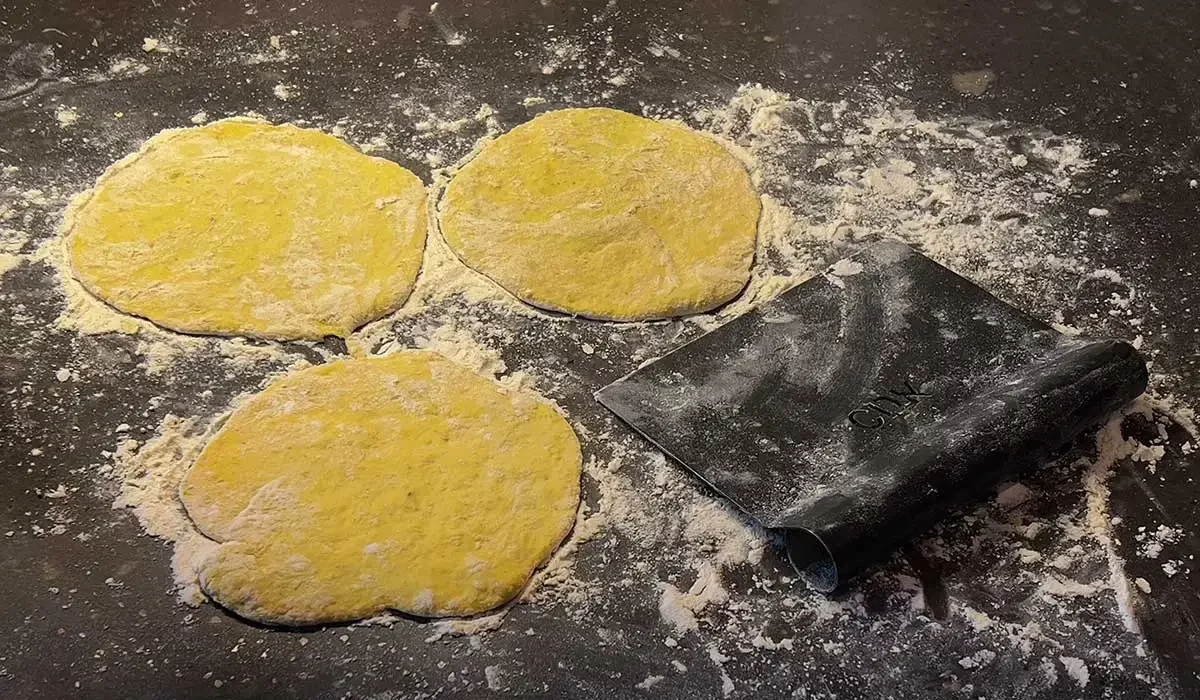 I’ve no doubt that filling is delicious, but I wanted to serve them with my kebabs. Flavored with cumin and turmeric, I knew they’d be a perfect match. The dough is very wet, but was very easy to work with and roll out. As long as I used plenty of flour, I had no issues with it sticking.
