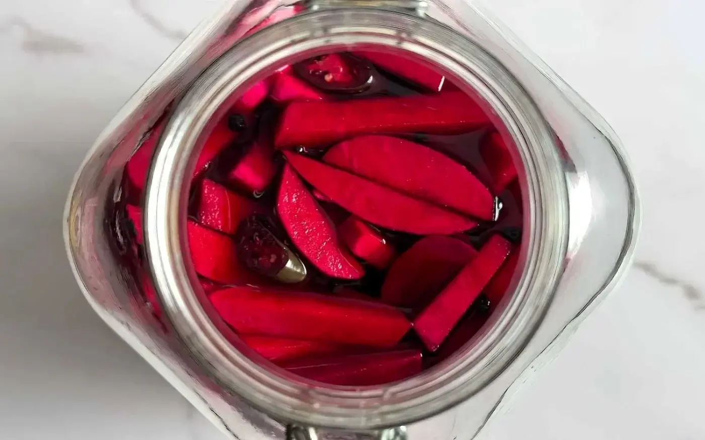 - Peel the turnips and the beets. Slice into 1/2 inch thick batons. You may want to wear gloves when preparing the beets. Place the turnips and beets in a sterilized half gallon jar or 2 - sterilized quart sized jars, along with the garlic cloves and chilies.