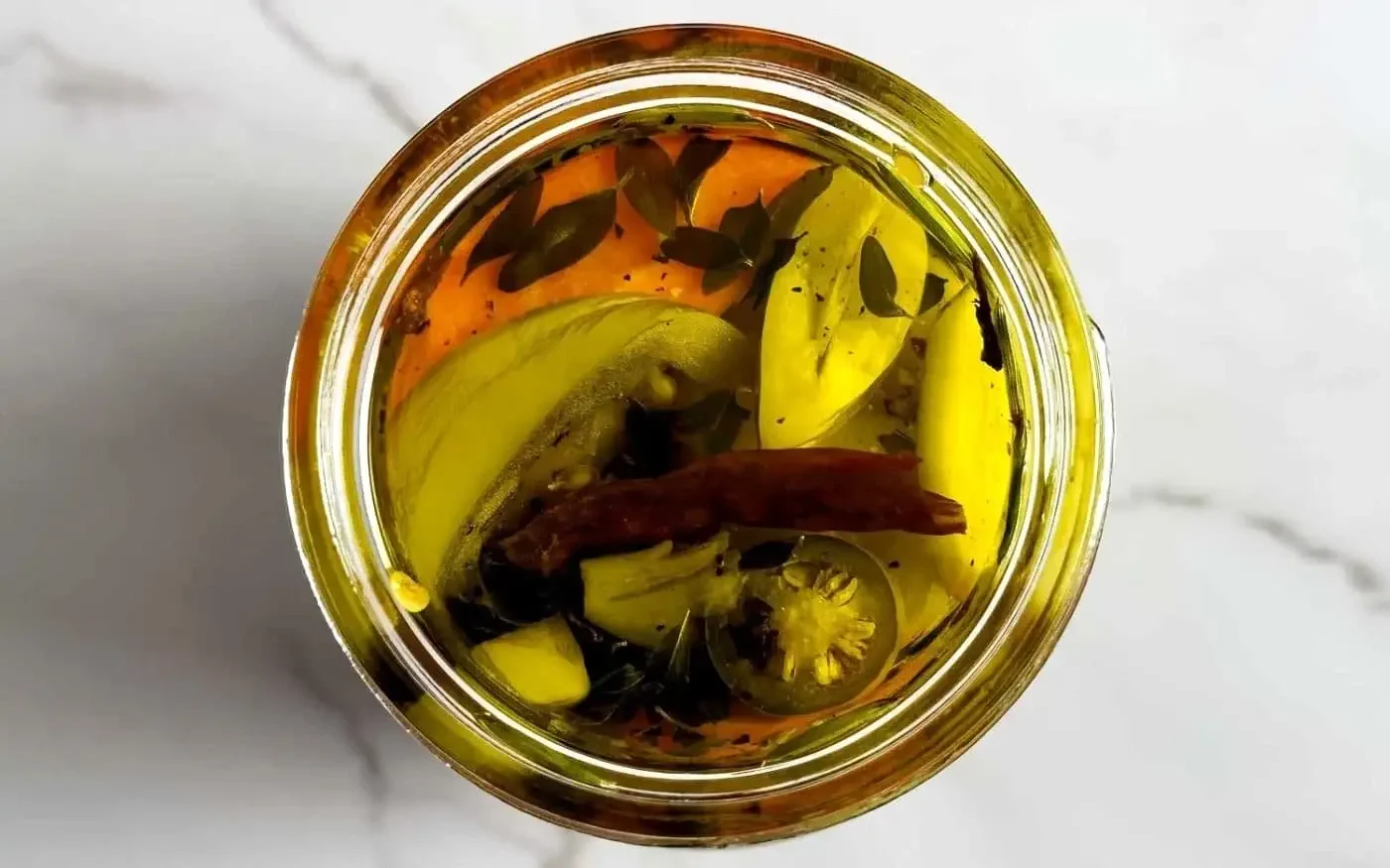 - In a large measuring cup, stir together the olive oil, garlic, chilies de arbol, black pepper, and oregano. Pack the drained vegetables into 3 sterilized glass pint jars. Pour over the olive oil mixture, topping off the jars with more oil if needed to fill to 1/2 inch head space. Cover and refrigerate. These will keep for at least 6 months.