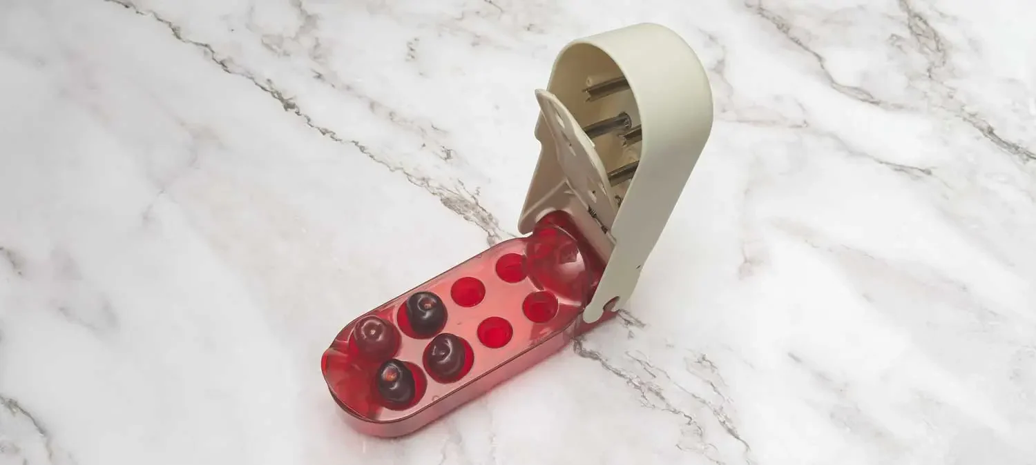 A few words about pitting those cherries. Ever since I bought this tool about 10 years ago, I’ve never dreaded pitting a load of cherries. Yes, you can use a chop stick to poke out the pit or some other type of poking utensil, but this tool makes it so much easier and faster. As you can see, it pits multiple cherries at the same time, is easy to clean and doesn’t take up a lot of room. My particular model is no longer available, but OXO makes one * that is very similar and if you’re thinking making a cherry pie, cobbler, or my salad, your life will be easier with one of these .*